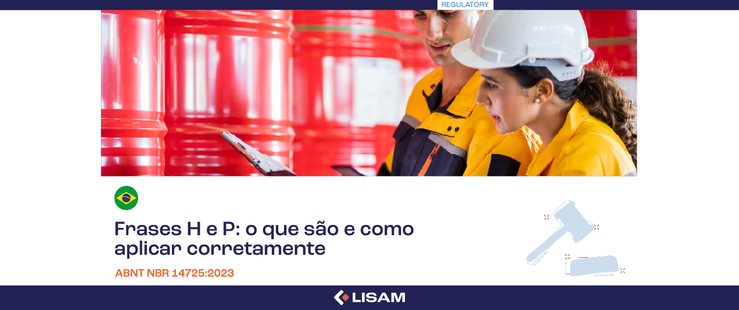 No Brasil, a transição foi formalizada com a publicação da ABNT NBR 14725 e a alteração da NR-26 pela Portaria SIT nº 229, de 24 de maio de 2011. Desde então, as frases H e P são os elementos textuais padronizados para a comunicação de perigos em rótulos e FDS de produtos químicos no território nacional.